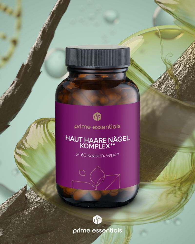 Biotin, Zink und Vitamin C unterstützen zentrale Prozesse, die für Haut, Haare und Nägel wichtig sind, während Vitamin E zum Schutz der Zellen beiträgt.